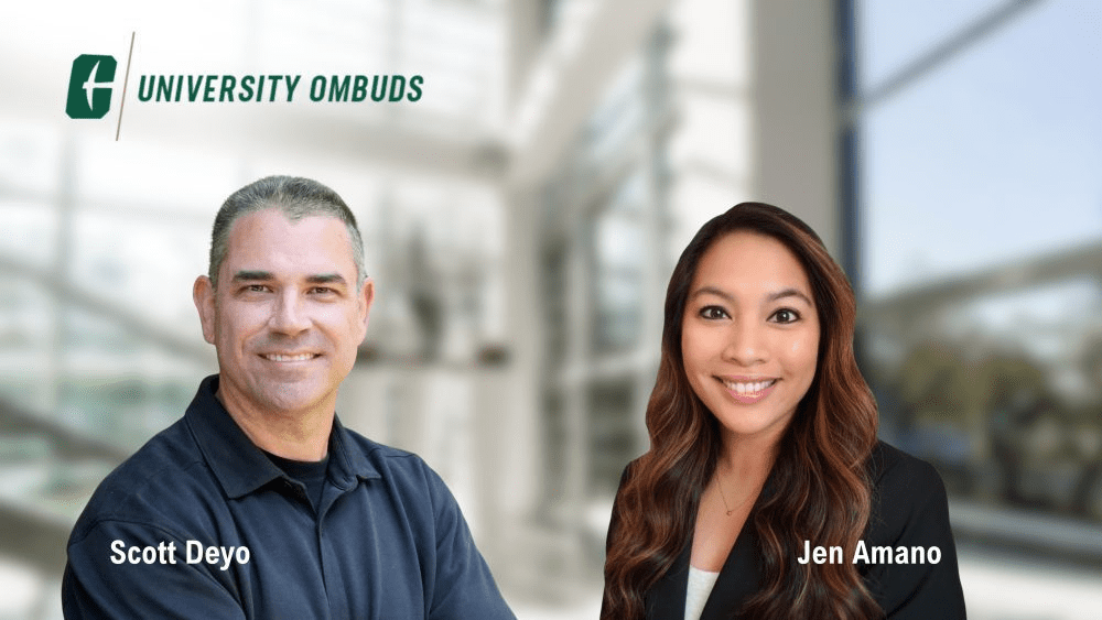 The University Ombuds program at UNC Charlotte is a confidential, independent, impartial, and informal resource for faculty, staff, and students (graduate and undergraduate) to informally work through challenging problems, dilemmas, and conflicts. The office adheres to the International Ombuds Association Code of Ethics and Standards of Practice.